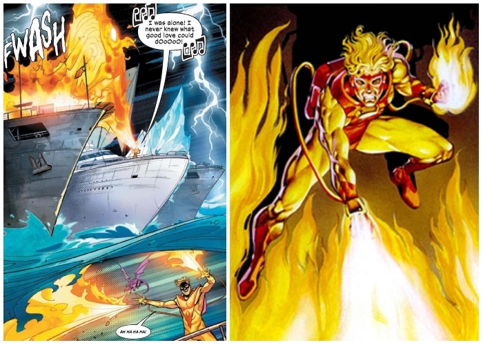 The Human Torch is Johnny Storm, and it’s the kind of superhero moniker that speaks for itself. His abilities are clearly pyrokinetic, because not only he can create fire and surround his entire body in it, it also allows him to fly.